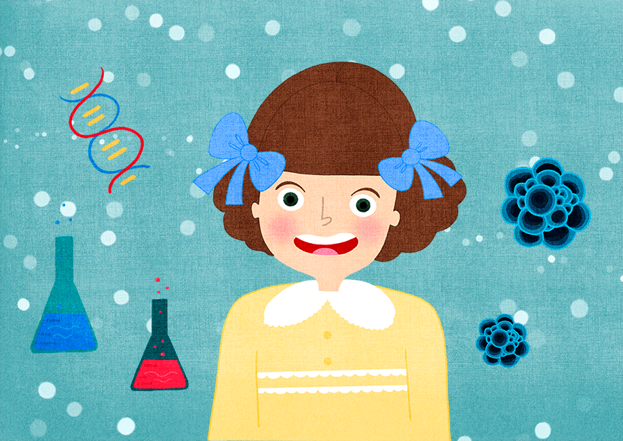Margarita Salas, bioquímica española. Ilustración para el proyecto www.nomecuentescuentos.com de @losdelvolcan y @kloshletter, dónde dan a conocer a mujeres excepcionales a través de cuentos para niños y niñas.